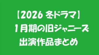 2026年冬ドラマ 【2026冬ドラマ】1月期の旧ジャニーズ出演作品まとめ 2026年冬ドラマの情報が、次々と解禁されています。旧ジャニーズことSTARTO ENTERTAINMENT所属のタレントが出演する冬ドラマを各グループごとに紹介していきます。※退所・独立組は省いています。※随時更新していきます。(2025... 2025.12.24 2026年冬ドラマ